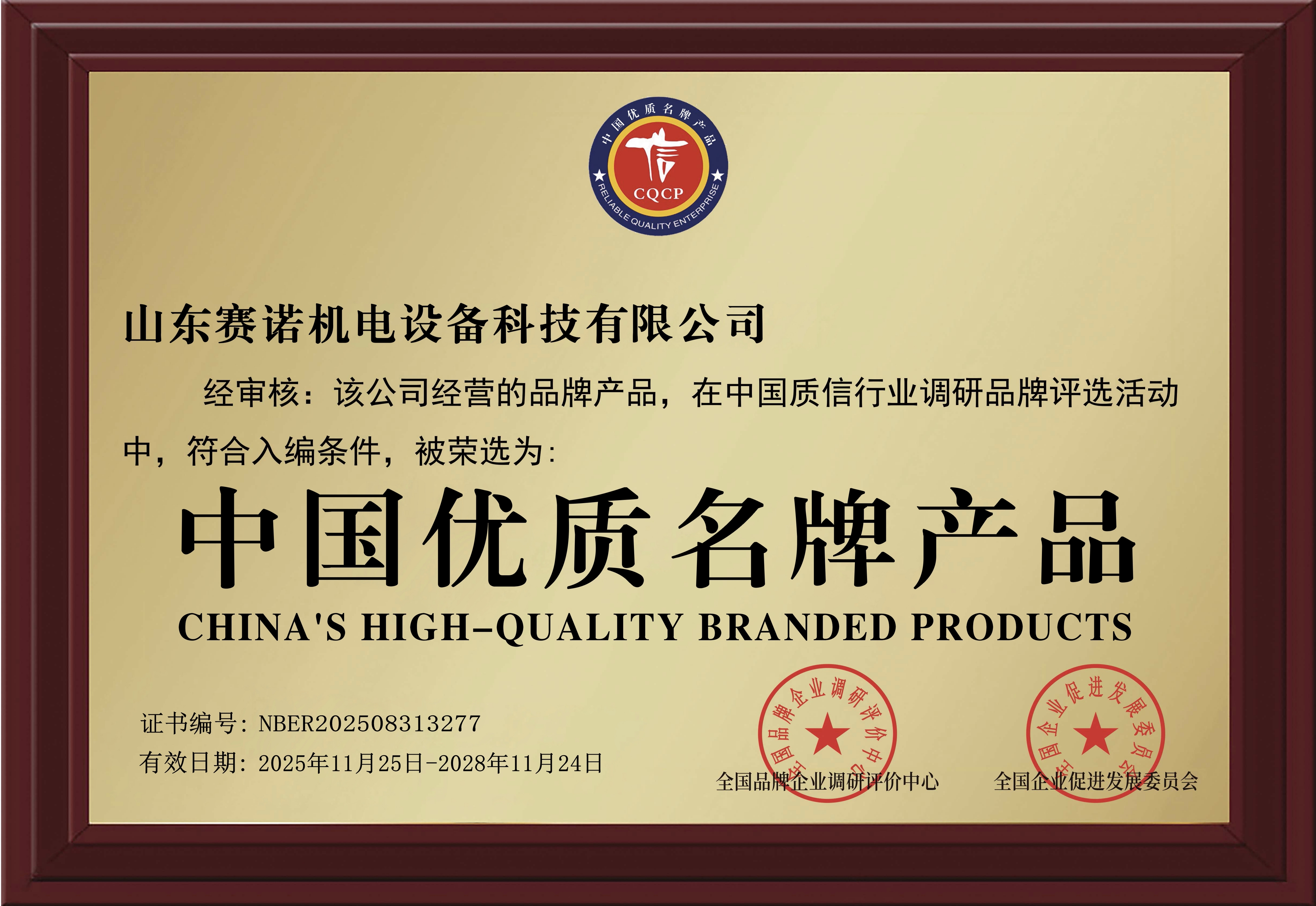 热烈祝贺山东赛诺荣获“中国优质名牌产品”